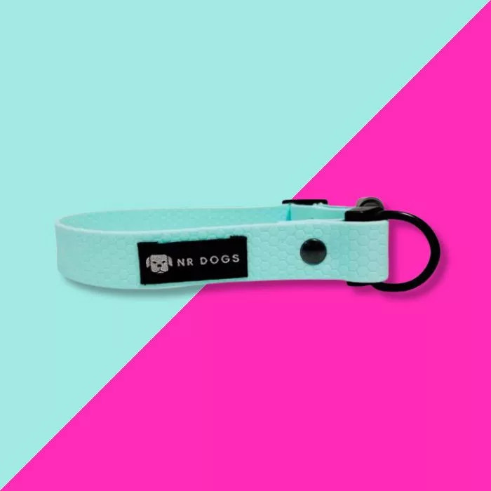 Az NRDOGS Nyakörv Hexa Menta egy igazán vidám viselet lesz a kutyusodnak. Méhsejt mintás, pvc bevonatos nyakörv, nem tartalmaza kutyusra káros anyagot.
