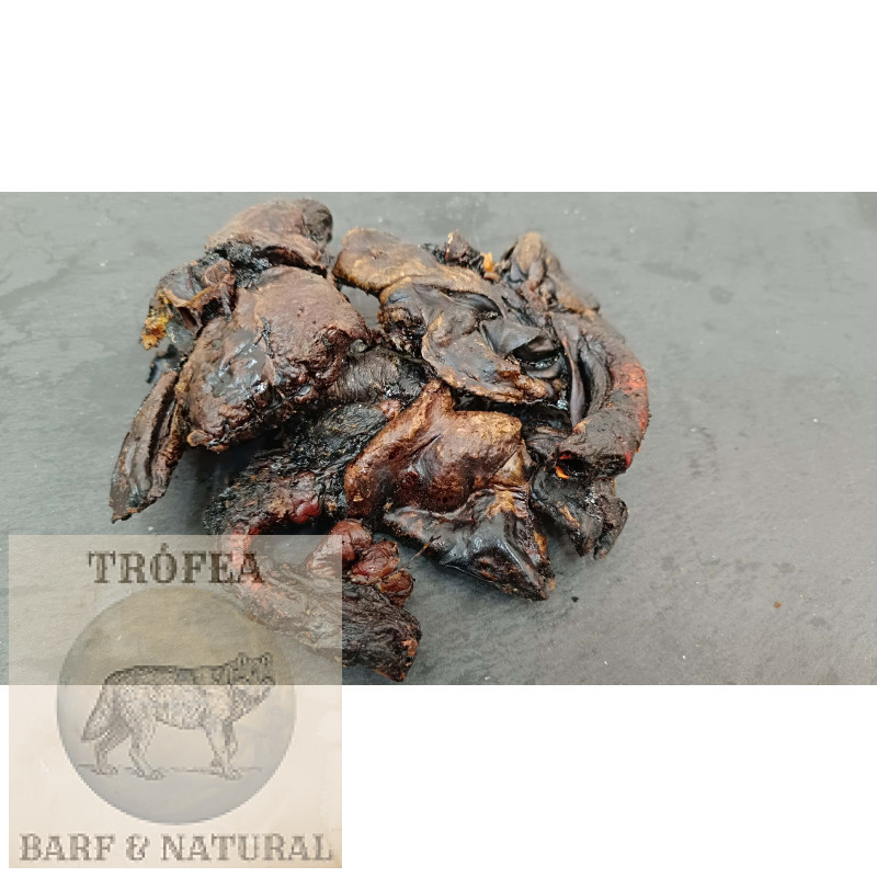 -100 % természetes vadnyúl belsőség – nem tartalmaz mesterséges ízfokozót, színezéket vagy tartósítószert.