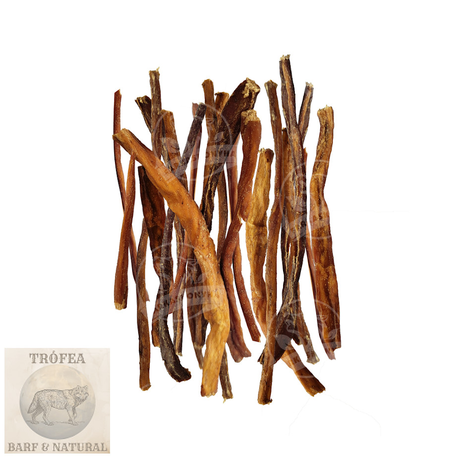 Szárított bivalyhúscsík, pálcika formájú, egészséges rágcsálnivaló, elsősorban kis és közepestestű kutyusoknak